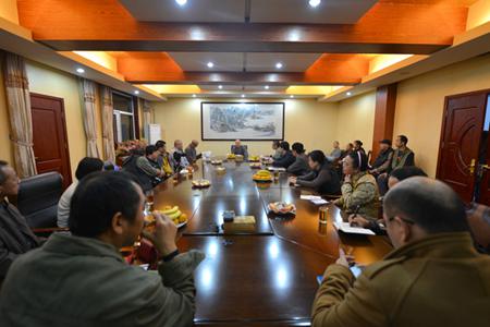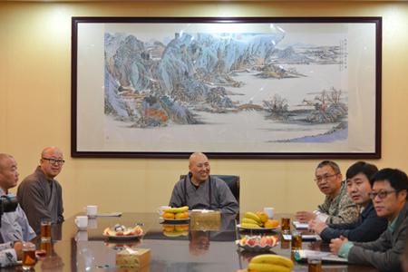 晚六点三十分,东林寺方丈大安法师在会议室与参会嘉宾亲切交流,就生态文明、珍惜生命等问题进行了开示。