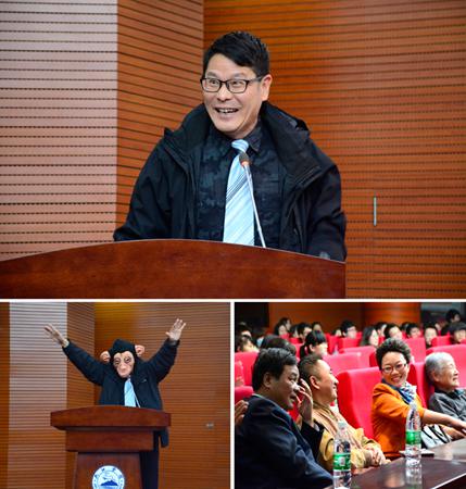 北京市大兴区政协副主席郭耕老师长期从事动物保护的教育实践工作。他谈到了中国儒释道文化对护生的重要作用,从精神层面与意识层面介绍了中国传统文化对生态文明的贡献。郭老师从自己的经验中总结出,保护的概念不是把动物关起来,而是把人类自己管理起来,做一个合格的地球公民。最后他用一个幽默而又意义深远的独角剧,把各类动物对地球的贡献、人类对地球的摧毁和对动物的残忍迫害演绎得淋漓尽致。