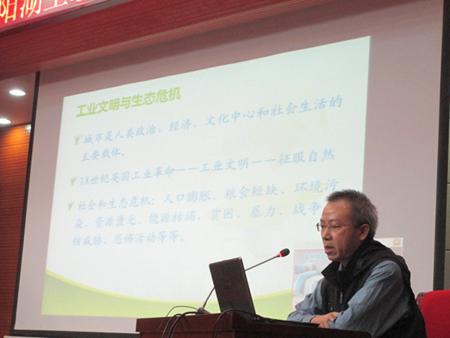 接下来,来自全国市长研修学院的余池明老师从文化的维度阐述了生态城市建设问题。余老师强调,提高城市生态文明水平的重中之重在于提升城市公民的精神文明。要重视儒释道三家传统文化在生态文明建设中的重要影响。从“心”反思,达到心净则国土净的至高境界。随后余老师又从理想人居环境、生态城市概念、生态环境的定义、迈向生态城市发展模式的转型等方面做了较为详细的介绍并提出建议:生态文化建设纳入公共政策、加强宣传教育、倡导低碳生活方式等。