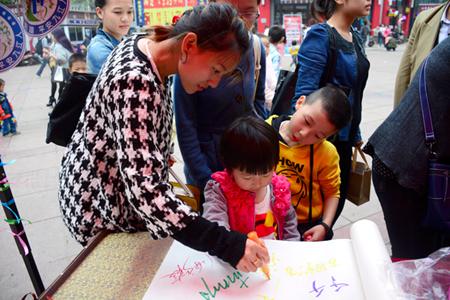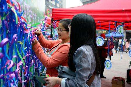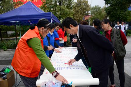 10月30日起,为期四天的“祈福母亲湖万人签名”活动在九江市十一个社区、校园内同步举行,百余名志愿者走向社区和校园向九江人民介绍第二届生态文明护生节的主题和意义,征集关于建设生态家园、护佑生灵的心愿和祝福。