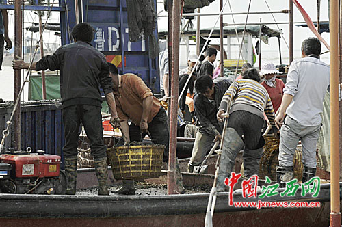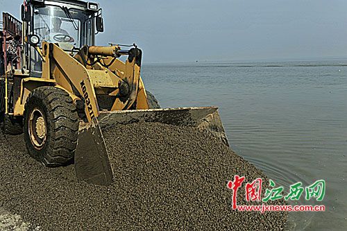 每年3月20日至6月20日,是鄱阳湖的禁渔期。5月19日上午9时许,都昌县城鄱阳湖码头停放着两辆大货车,车上散装着半车的螺蛳。这两辆车是都昌县渔政局的执法人员前一天晚上上路检查时拦截下来的,车上装载的螺蛳均在10吨之上。到下午4时,在渔政执法人员耐心说服之下,两名司机才极不情愿地将车上的螺蛳缷下,并雇请码头的铲车将螺蛳推入鄱阳湖中。